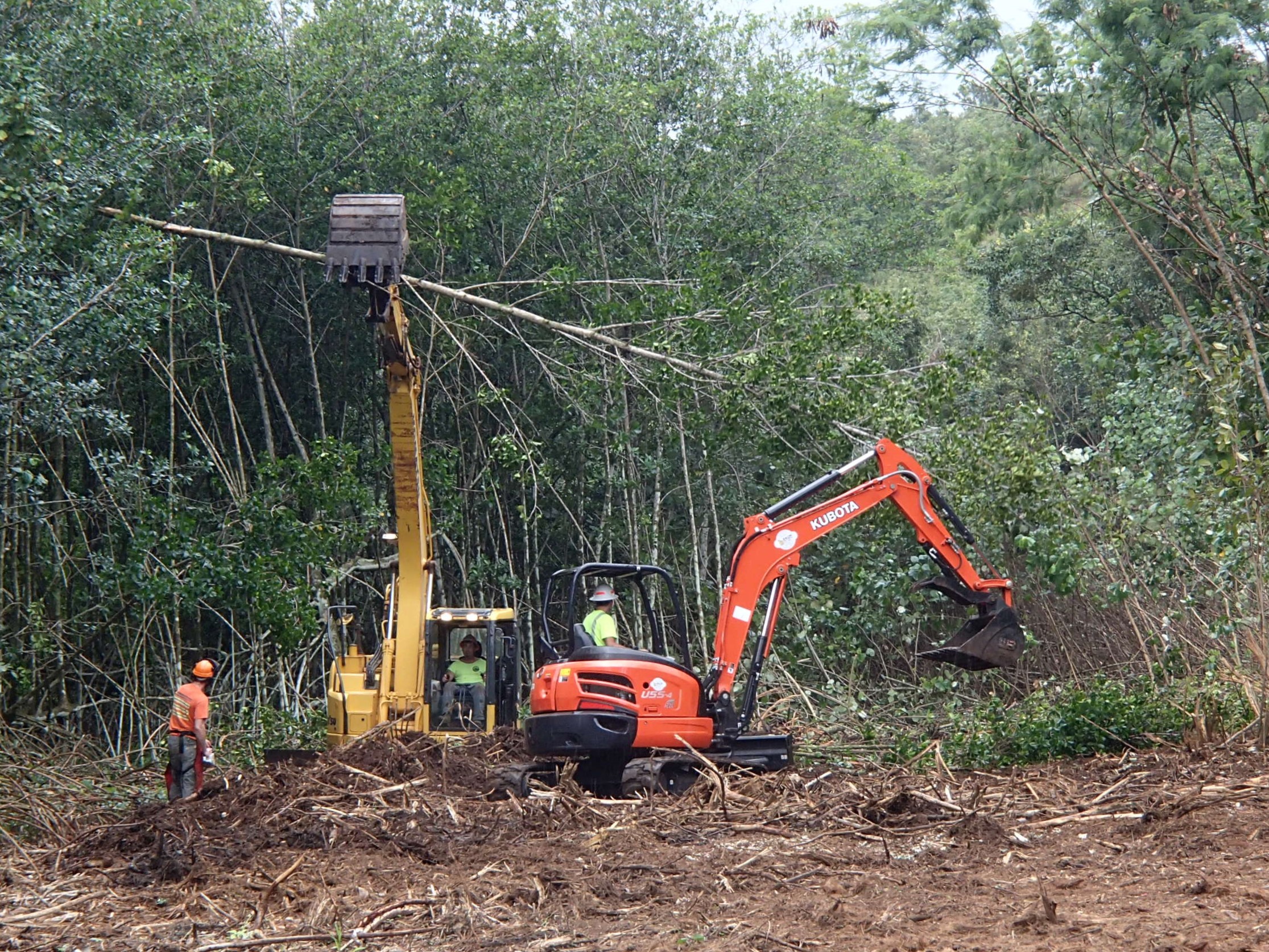 Today (December 19, 2018), we have mechanized help to clear the stockpile area where the cut mangrove will be piled. Once that stockpile area is filled the Kauai Green Energy Company will haul it and turn it into renewable energy.